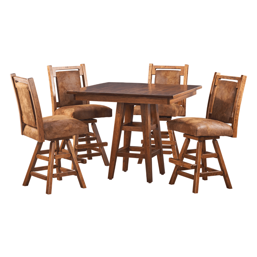 Shown in 42” x 42”, this pub table is also available in custom sizes to perfectly fit your dining area, kitchen, or entertainment space. Its sturdy construction and classic design make it ideal for farmhouse kitchens, rustic cabins, and mountain lodges.