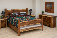 Bedroom 2 features a beautifully crafted Queen Live Edge Black Walnut Bed, two matching Nightstands, and a 5-Drawer Chest. Amish made with rustic charm and timeless durability, this set offers both elegance and function for your cabin retreat.